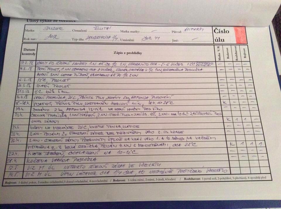 Záleží na každém včelaři pro jaký způsob vedení záznamů se rozhodne a bude mu vyhovovat. Důležité je jejich přesné a podrobné vedení po celou dobu včelaření.